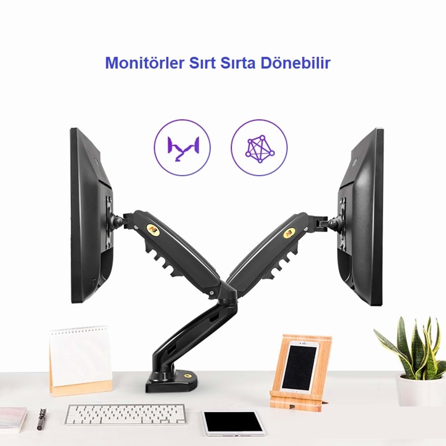 TriLine NB F160 Çift Kol Gazlı Hareketli 10-27" Masa Tutucu