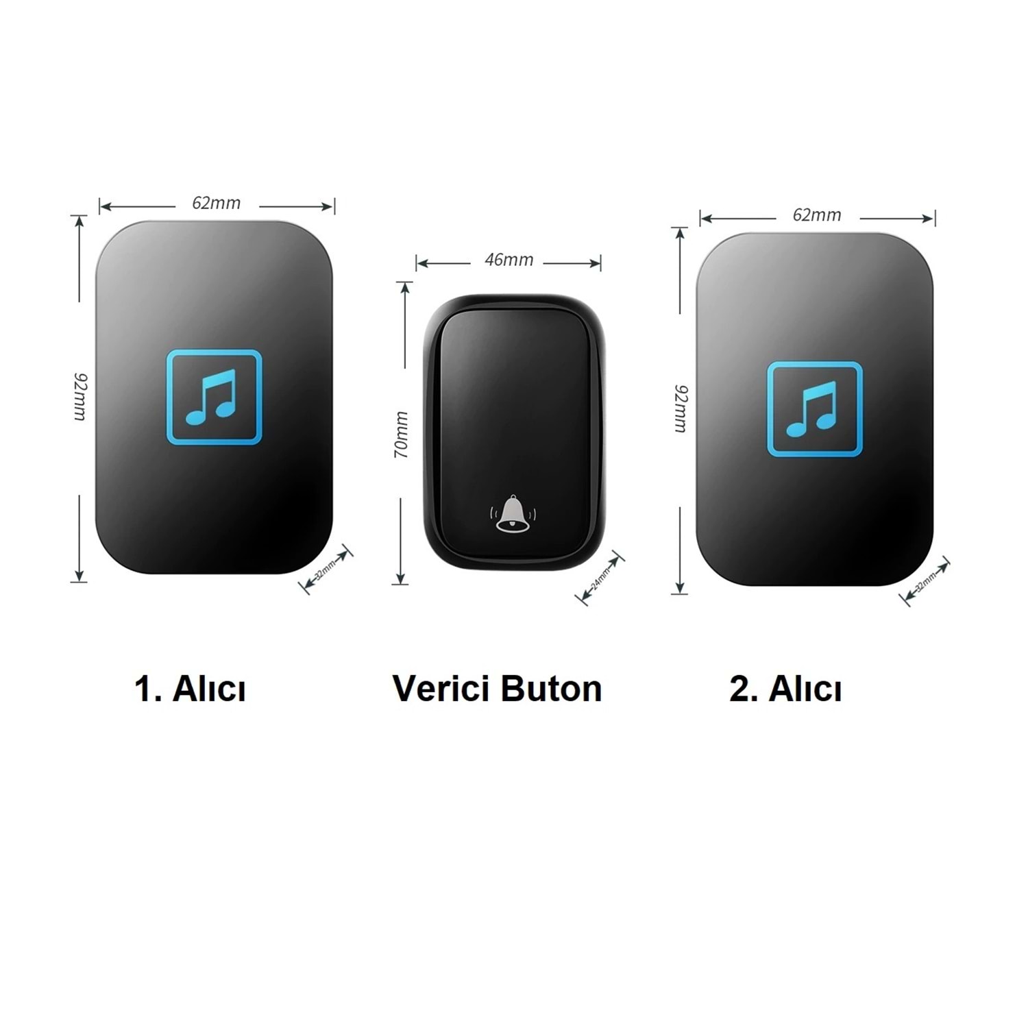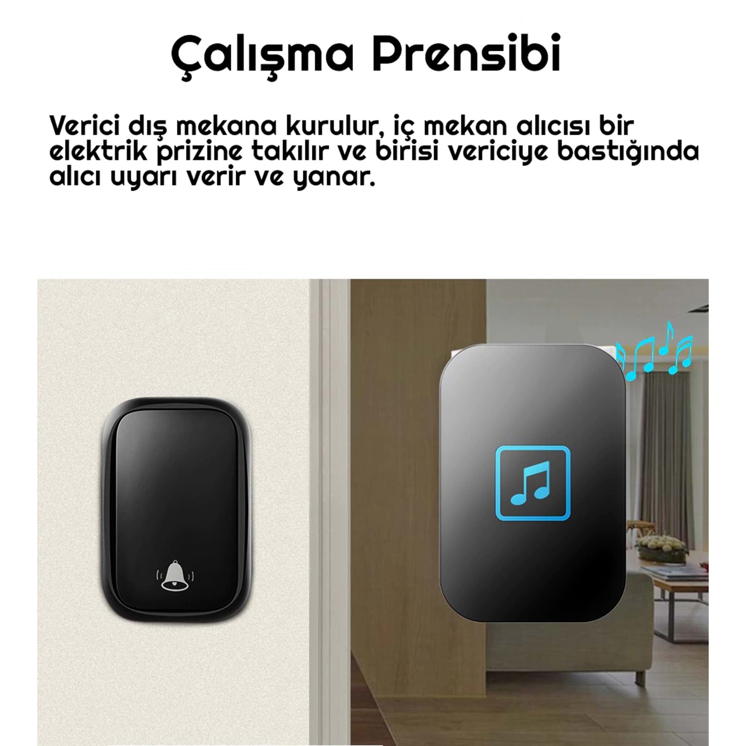 Cacazi 2 Alıcılı Pil Gerektirmeyen Kablosuz LED Kapı Zili