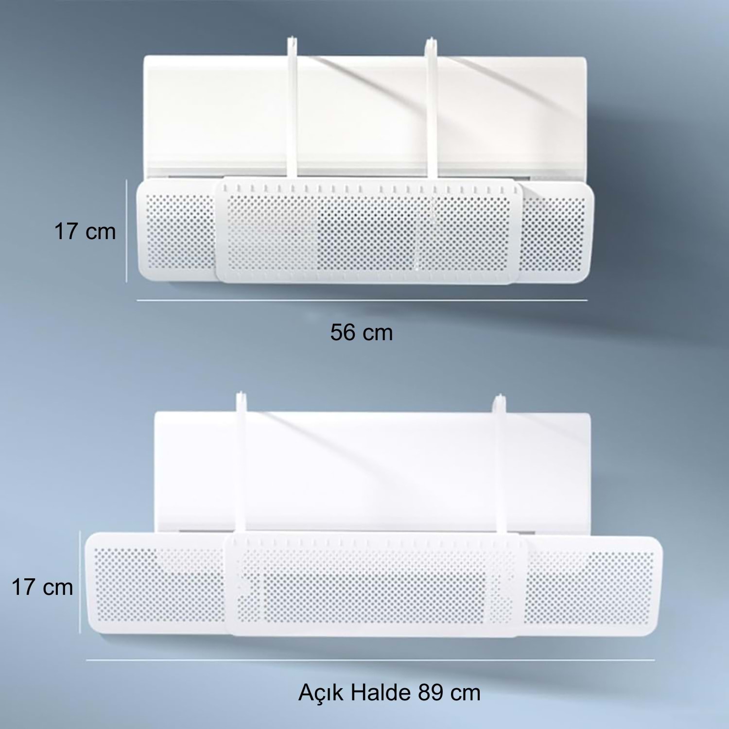 SPLİT KLİMALAR İLE UYUMLU; Duvara monte klimalar için özel olarak tasarlanmış klima yönlendirici üniversal yapısı ile 56-89 cm aralığında istediğiniz boyutta ayarlanabilir. Sağlığa ve çevreye zarar vermeyen yüksek kaliteli PP malzemeden üretilmiştir.