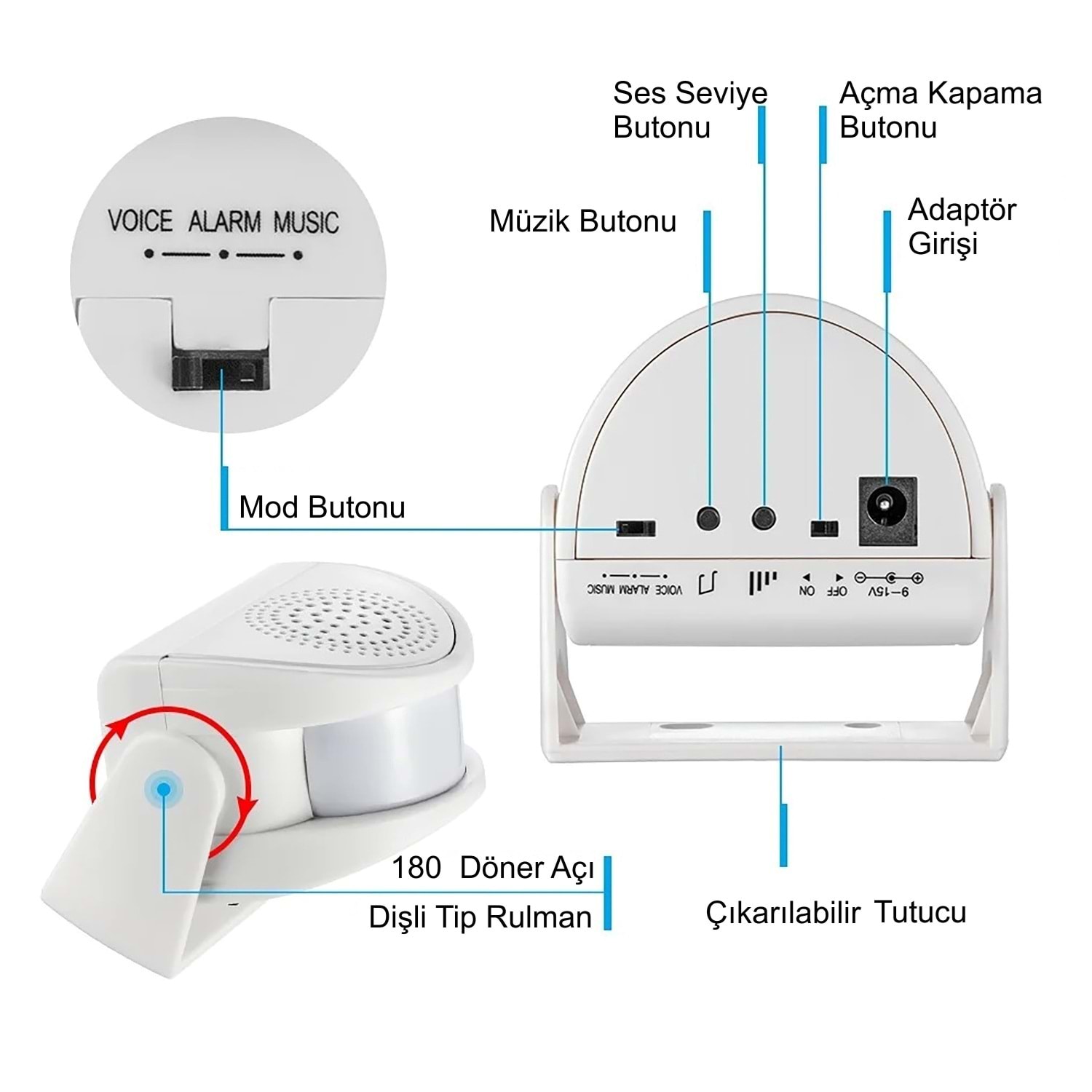 TriLine Misafir Karşılama Zili 3 Modlu Kumandalı Hareket Sensörlü Güvenlik Alarm Pır Sensör