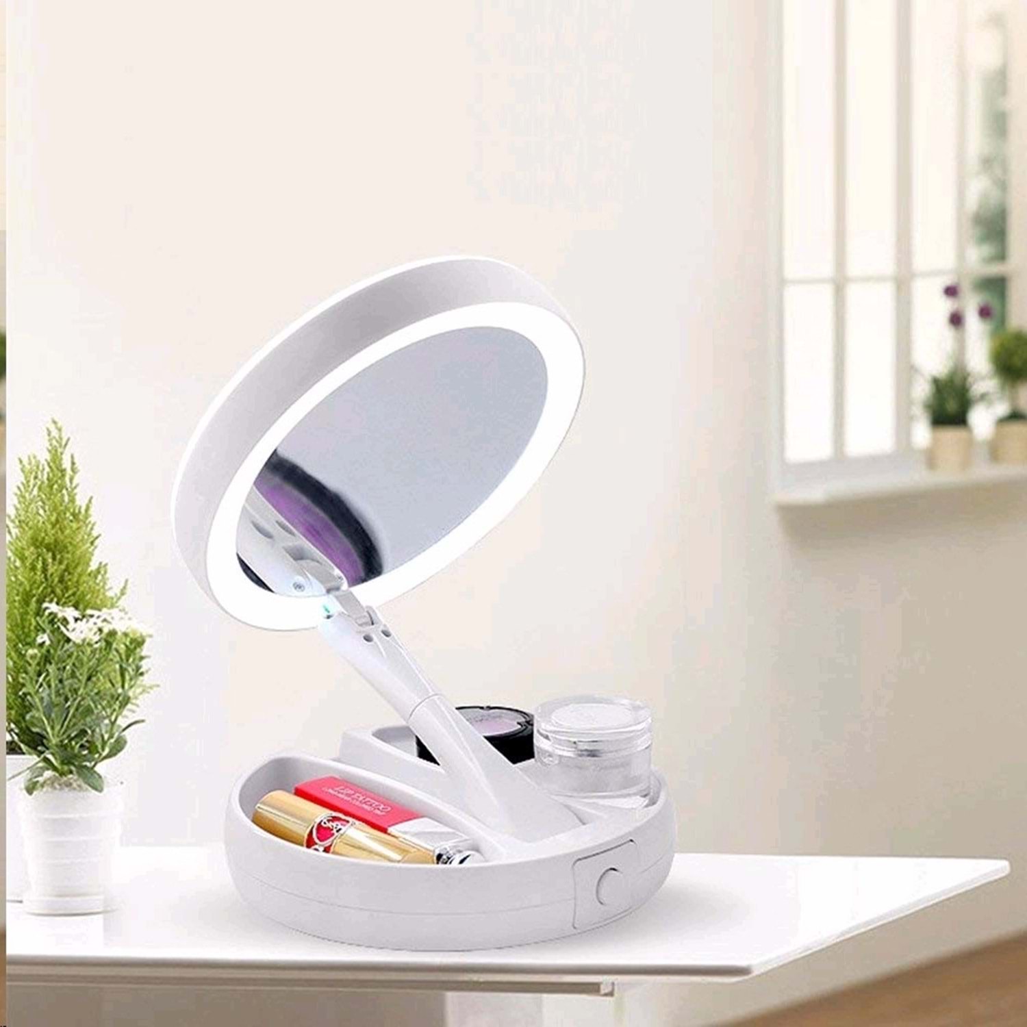 TriLine LED Işıklı 10X Katlanabilir Çift Taraflı USB Makyaj Aynası