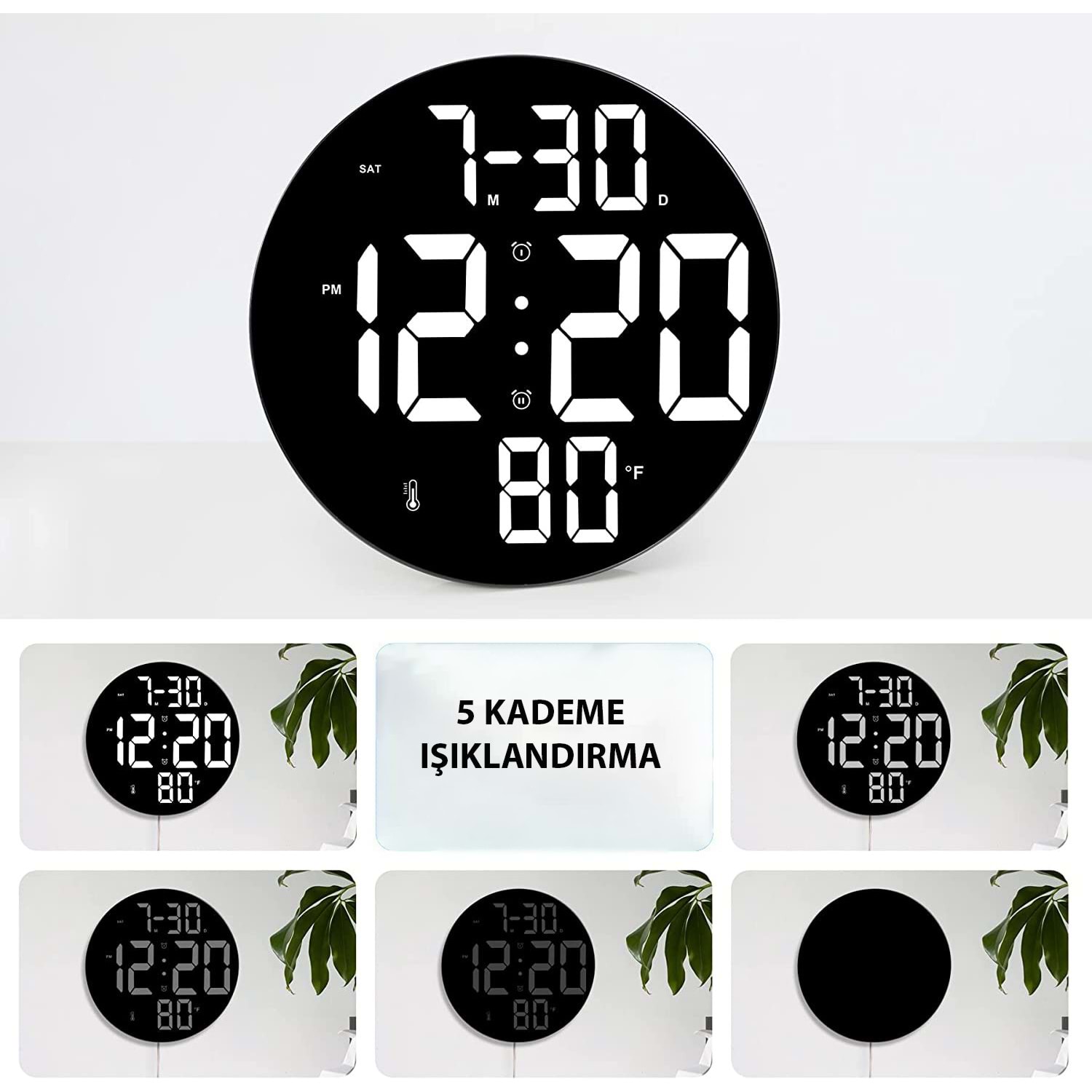 [Arka ışık ve parlaklık ayarlanabilir ]: Arka ışık LED duvar saati, karanlık bir ortamda bile zaman veya diğer verileri okumayı kolaylaştırır.