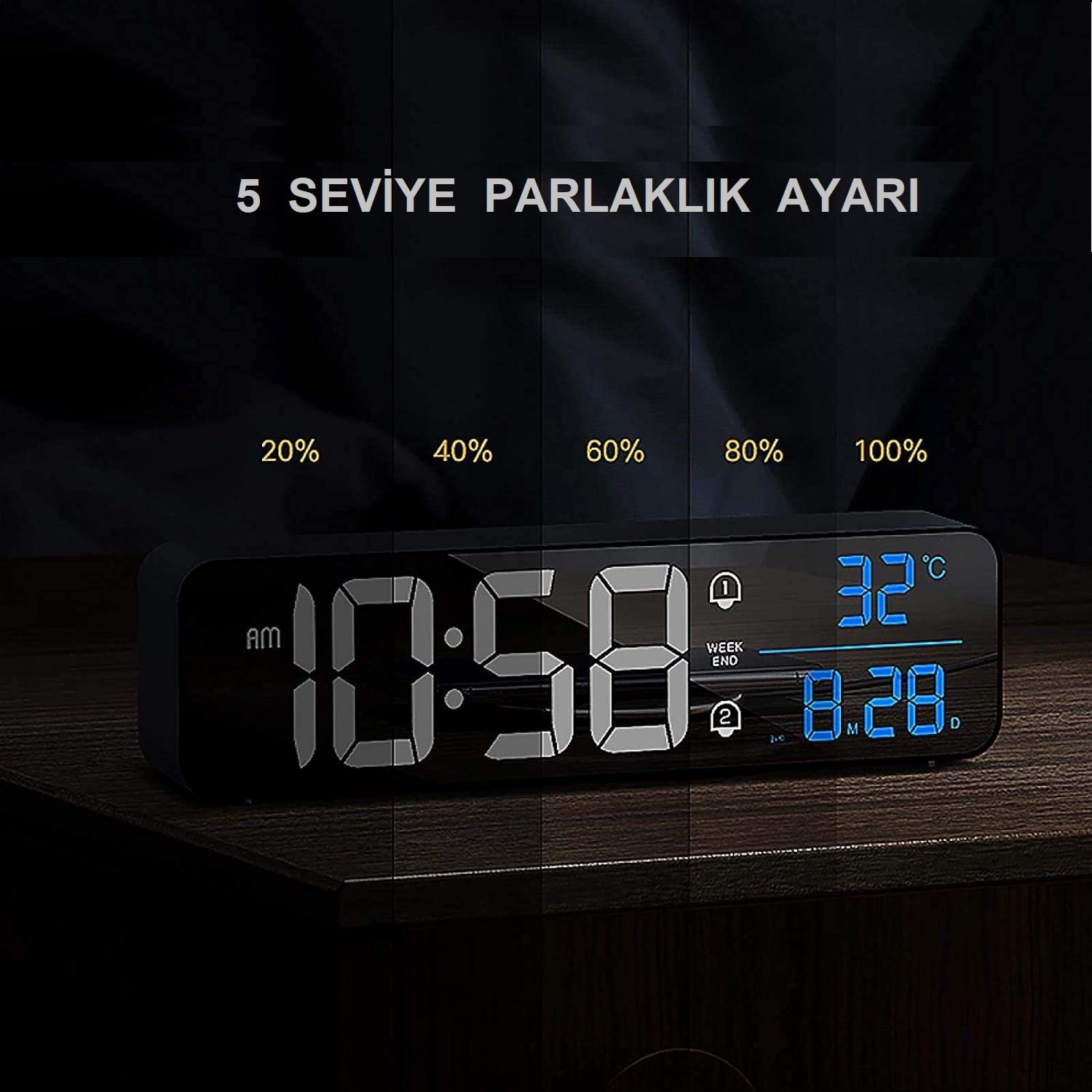 TriLine HD LED Ekranlı Aynalı Elektronik Saat Sıcaklık Tarih Dijital Masa Saati